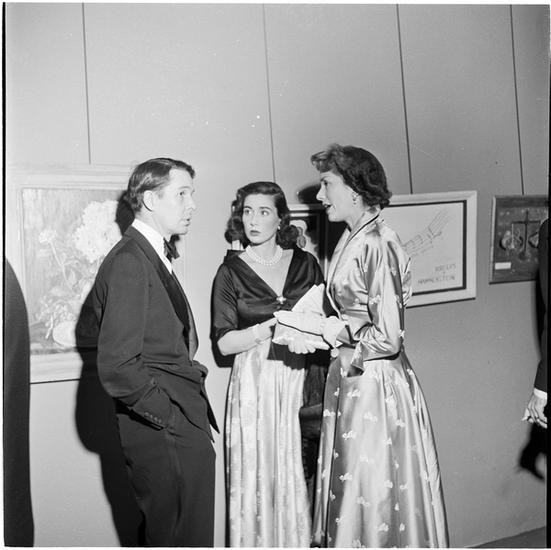 Art by Celebrities Sponsored by the Urban League [Woman and two men talking at the art auction.]