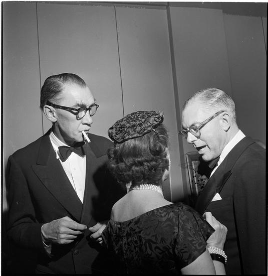 Art by Celebrities Sponsored by the Urban League [Men talking at the art auction.]