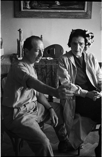 Art by Celebrities Sponsored by the Urban League [Man and a woman talking with outstretched arms.]