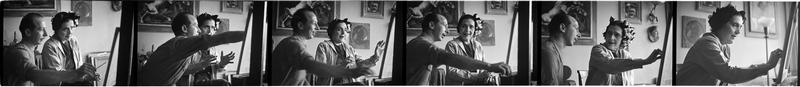 Art by Celebrities Sponsored by the Urban League [Woman watching a man paint.]