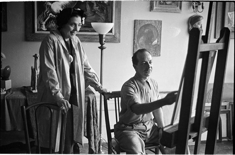 Art by Celebrities Sponsored by the Urban League [Man watching woman paint.]