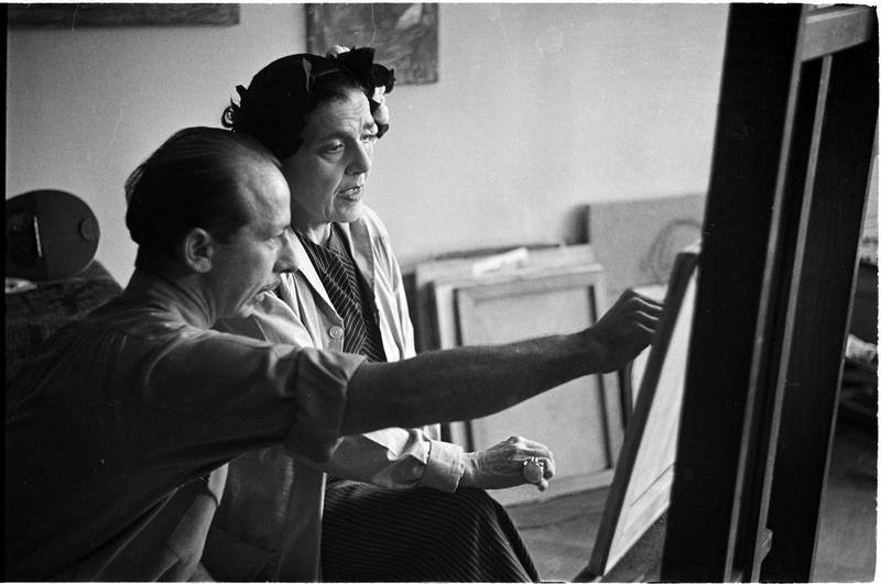 Art by Celebrities Sponsored by the Urban League [Man watching woman paint.]