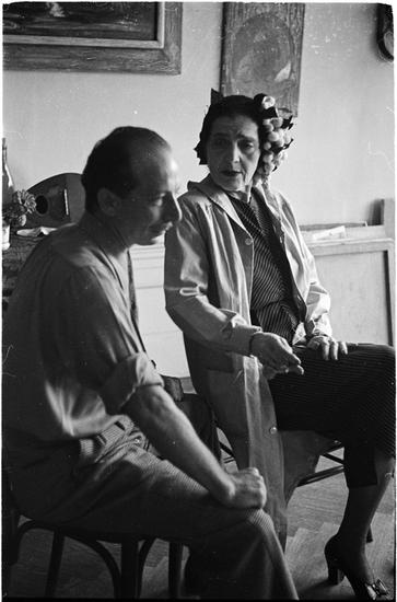 Art by Celebrities Sponsored by the Urban League [Woman and a man talking.]