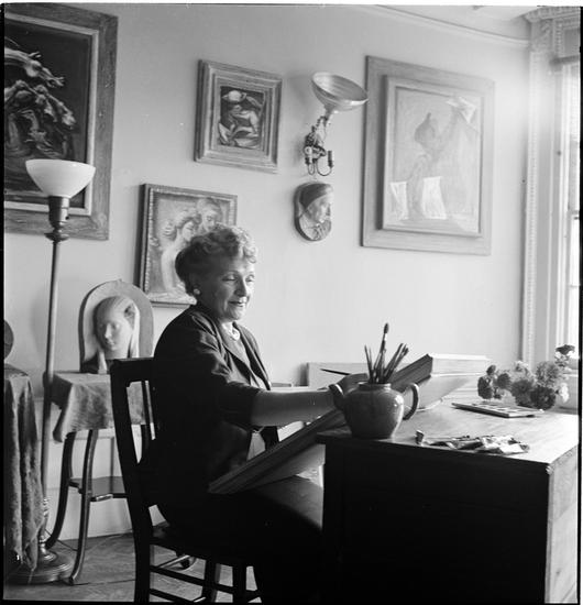 Art by Celebrities Sponsored by the Urban League [Helene Paul and a man in an artists' studio.]