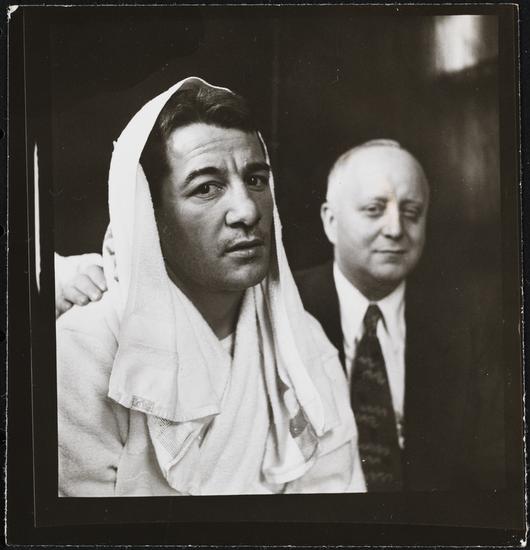 Rocky Graziano, He's a Good Boy Now [Rocky Graziano with two men.]