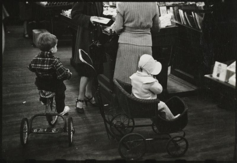 The 5 and 10 [Boy on tricycle and a child in a stroller at Woolworth's.]
