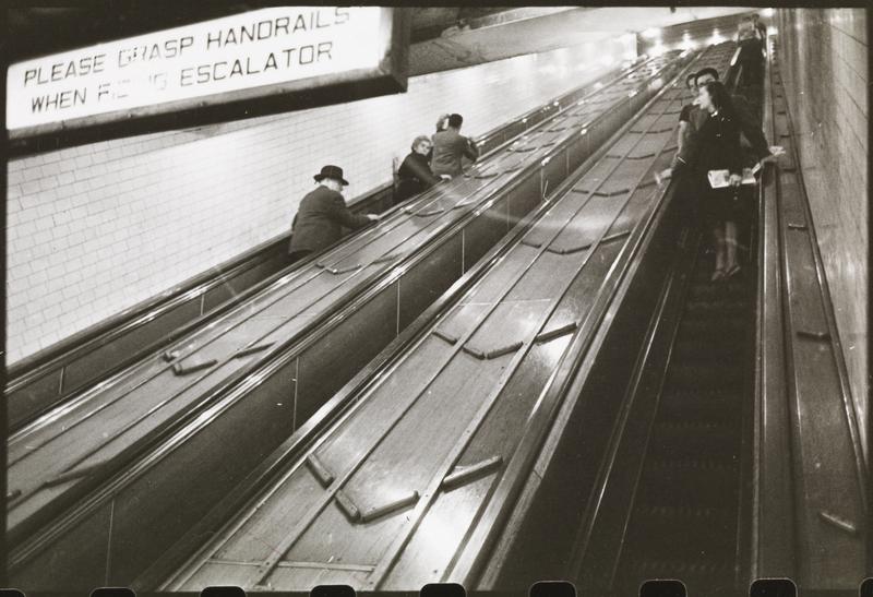 Life and Love on the New York City Subwayv [People on escalators in a subway station.]
