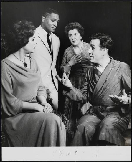 [Rochelle Oliver as Lily Berniers, Percy Rodrigues as Henry Simpson and Irene Worth as Albertine Prine in "Toys in the Attic".]
