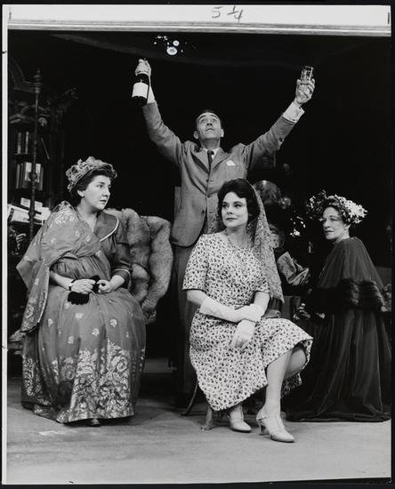 [Rochelle Oliver as Lily Berniers, Percy Rodrigues as Henry Simpson and Irene Worth as Albertine Prine in "Toys in the Attic".]