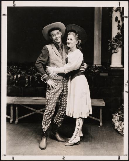 [Ray Middleton as Frank Butler and Mary Jane Walsh as Annie Oakley in "Annie Get Your Gun".]