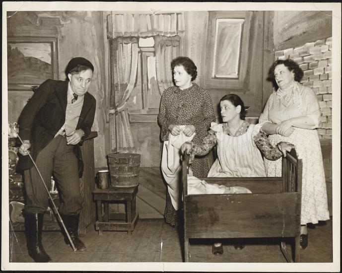[Miriam Kressyn, Betty Jacobs, Rose Goldberg and Chana Hollander in "When the Heart is Young".]