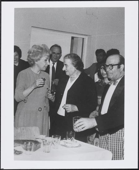 [Cast of "The Sage of Rottenburg" with playwright H. Leivick and Golda Meir.]