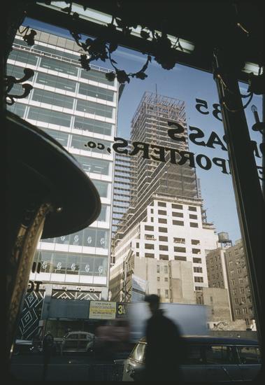 Changing New York [Construction worker playing a bagpipe in an unfinished building.]