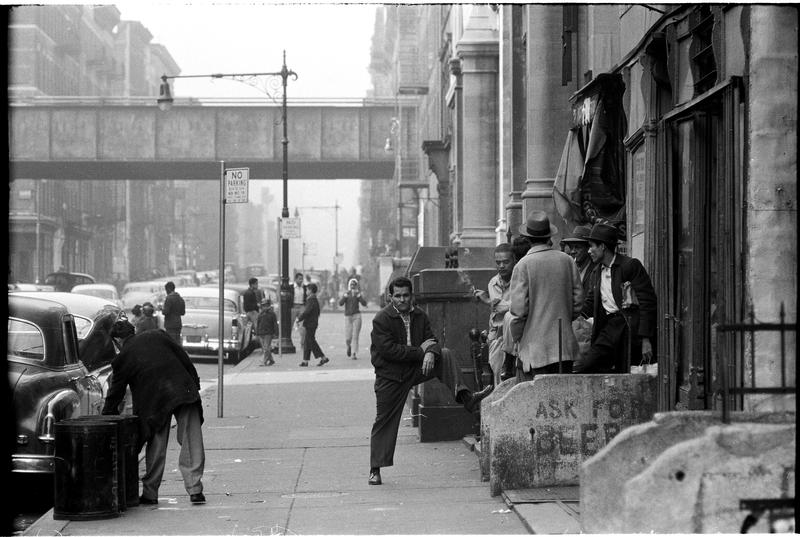 Changing New York [Men on the corner of an unidentified block in Harlem.]