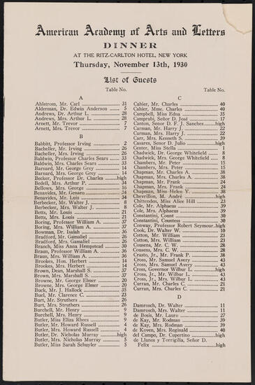 Dinner of the American Academy of Arts and Letters