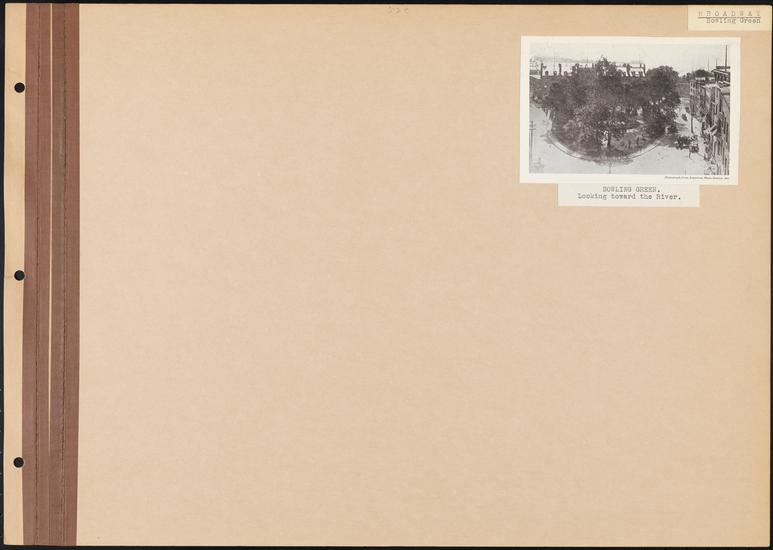 Description Bowling Green. Looking toward the river. | J. Clarence Davies Street Views Scrapbook.