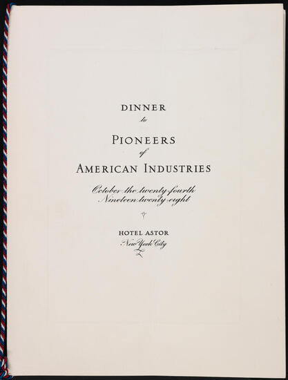 Seating List. Dinner in Honor of Pioneers of American Industry