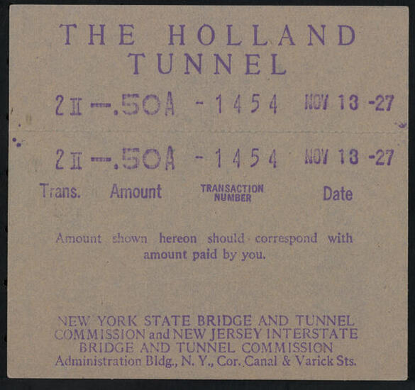 Hudson River Vehicular Tunnel [For 34 Years of Loyal Service - Eric S. Barron.]