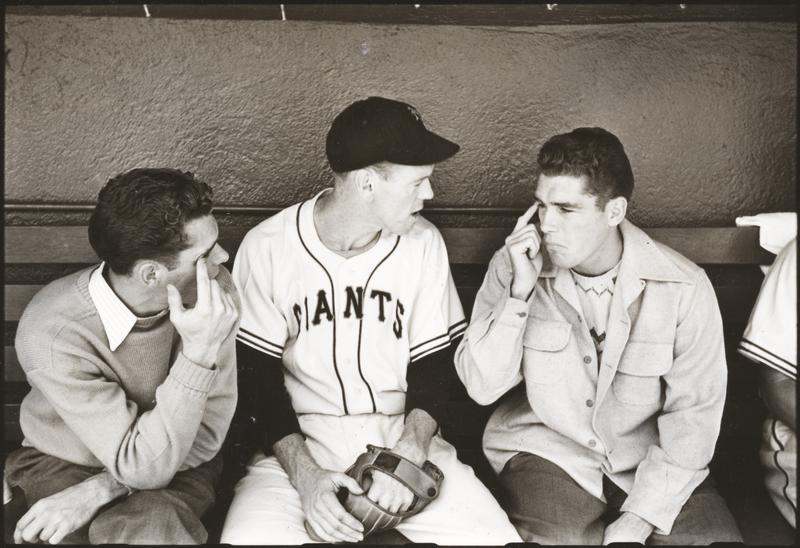 Walter Cartier, Prizefighter of Greenwich Village [Walter and Vincent Cartier talking to a New York Giants player in the dugout.]
