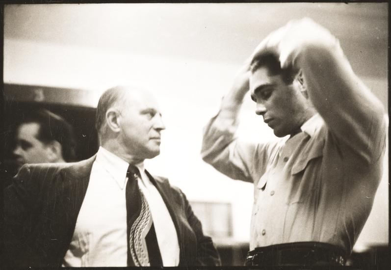 Walter Cartier, Prizefighter of Greenwich Village [Walter Cartier with a man in a locker room.]