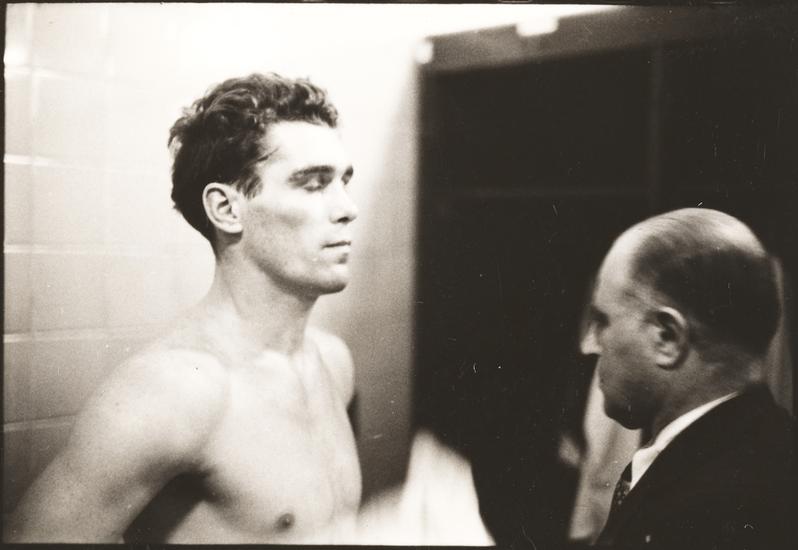 Walter Cartier, Prizefighter of Greenwich Village [Walter Cartier with a man in a locker room.]
