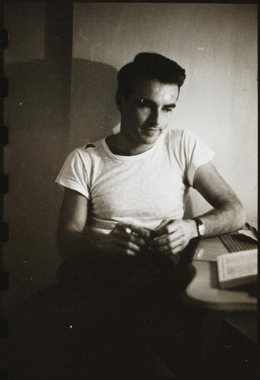 Montgomery Clift - Glamour Boy in Baggy Pants [Montgomery Clift sitting at a table.]