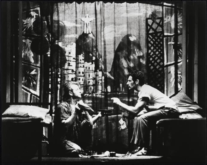 [Brent Carver as Molina and Anthony Crivello as Valentin in "Kiss of the Spider Woman".]