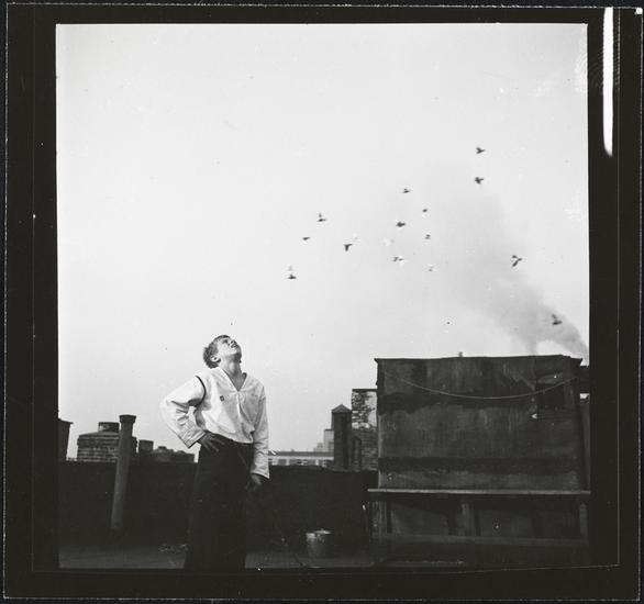 Shoe Shine Boy [Mickey releasing pigeons from a rooftop coop.]