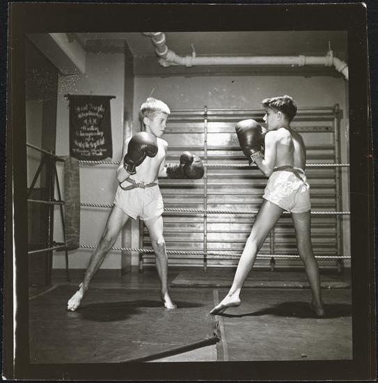 Shoe Shine Boy [Mickey boxing with another boy.]