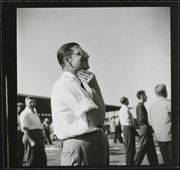 Aqueduct Race Track [Man looking at a racing form at a racetrack.]