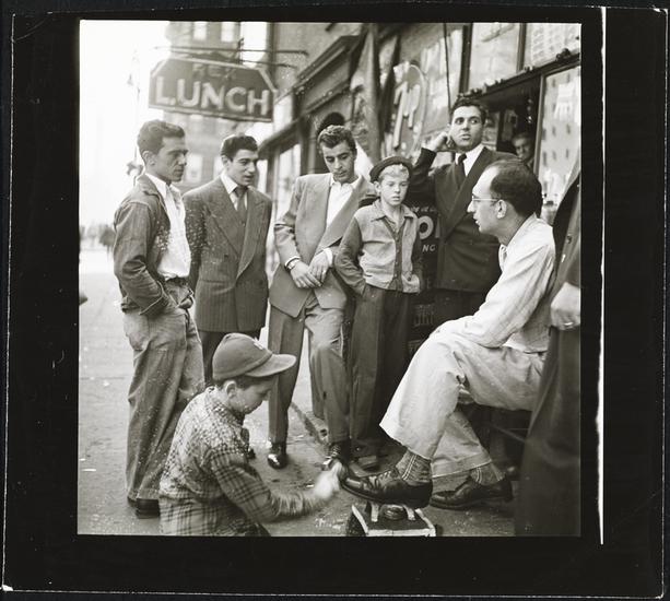 Shoe Shine Boy [Man paying Mickey for shining his shoes.]