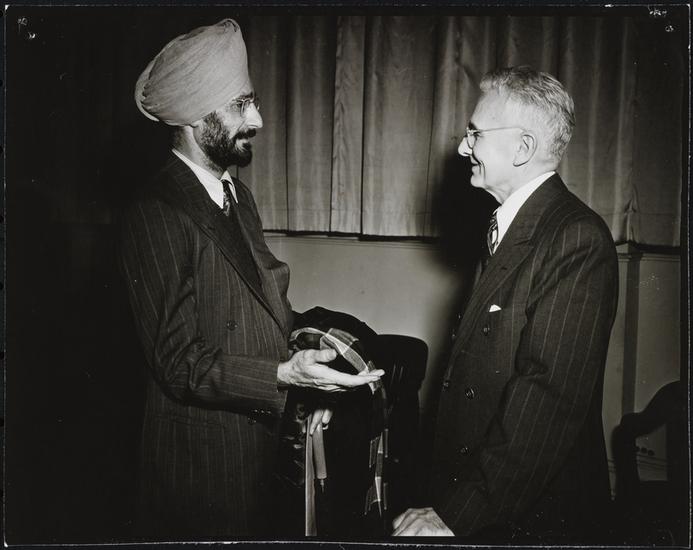 He Sells Success - Dale Carnegie [Dale Carnegie shaking hands with a student in his public speaking class.]
