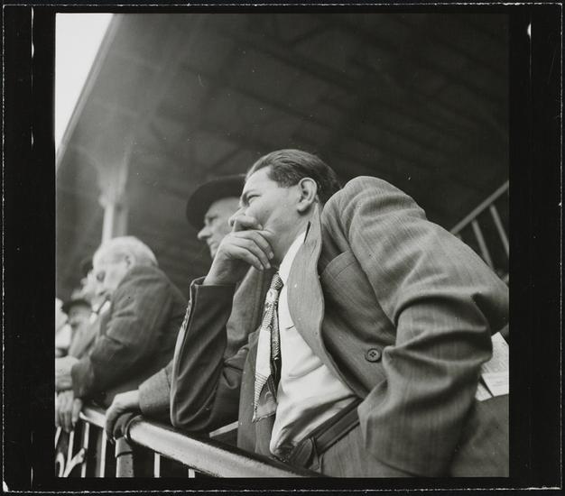 Aqueduct Race Track [Audience in the grandstand at a racetrack.]