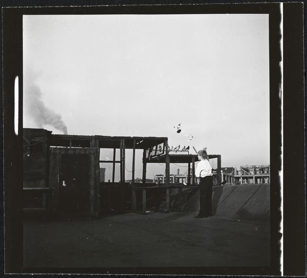 Shoe Shine Boy [Mickey releasing pigeons from a rooftop coop.]