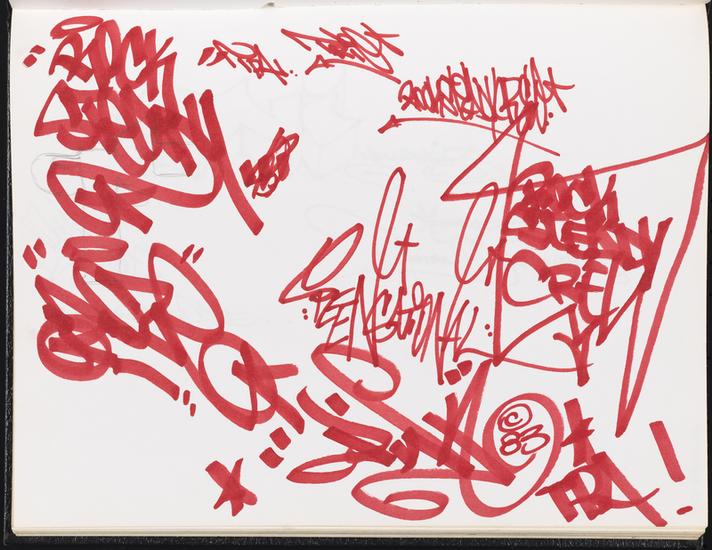 Pink [Page in sketchbook belonging to Lady Pink.]