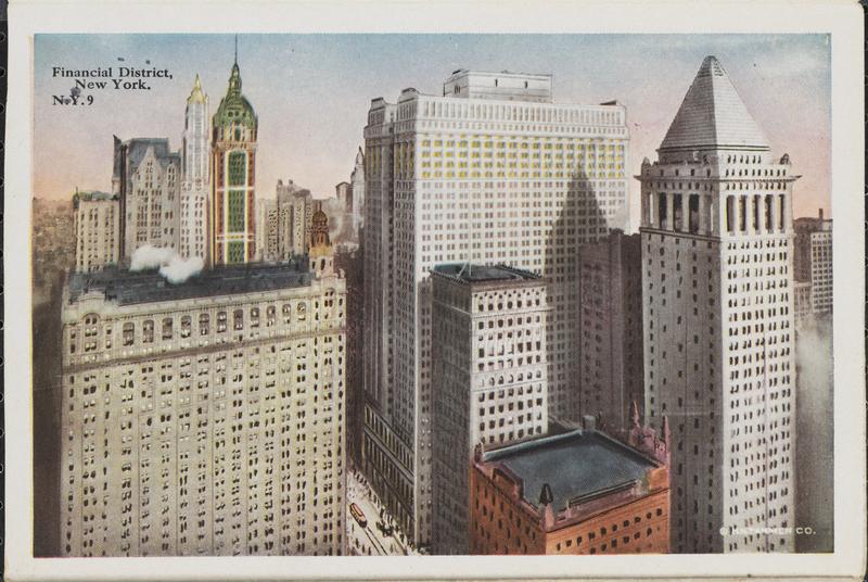 Panorama of Lower Manhattan and Bay from top of Woolworth Building, New York City.