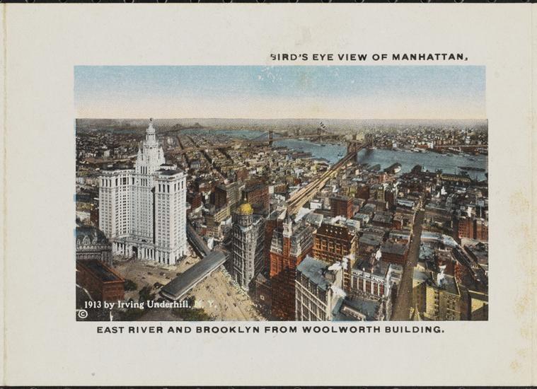 Bird's Eye View of Manhattan, East River and Brooklyn from Woolworth Building.