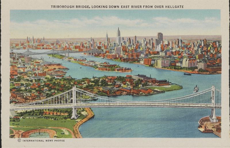 [Aerial view of the Triborough and Hell Gate Bridges.]