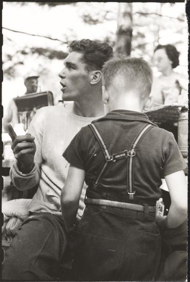 Walter Cartier, Prizefighter of Greenwich Village [Walter Cartier and a young boy eating at an outdoor gathering.]
