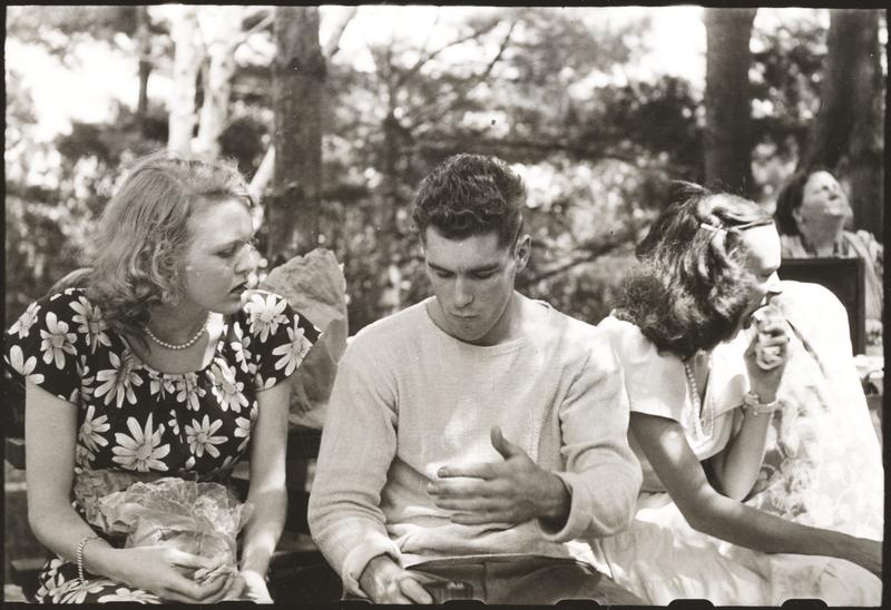 Walter Cartier, Prizefighter of Greenwich Village [Walter Cartier sitting by two women at an outdoor gathering.]