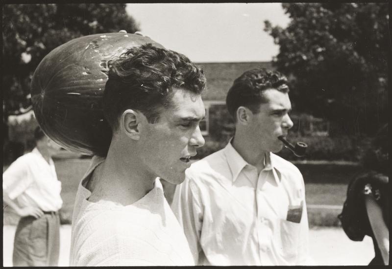 Walter Cartier, Prizefighter of Greenwich Village [Walter Cartier carrying a watermelon and greeting guests at an outdoor gathering.]