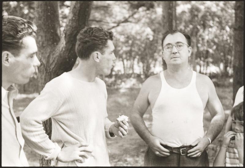 Walter Cartier, Prizefighter of Greenwich Village [Walter and Vincent Cartier talking to guests at an outdoor gathering.]