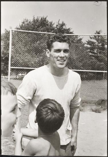 Walter Cartier, Prizefighter of Greenwich Village [Walter Cartier watching a boy play baseball.]