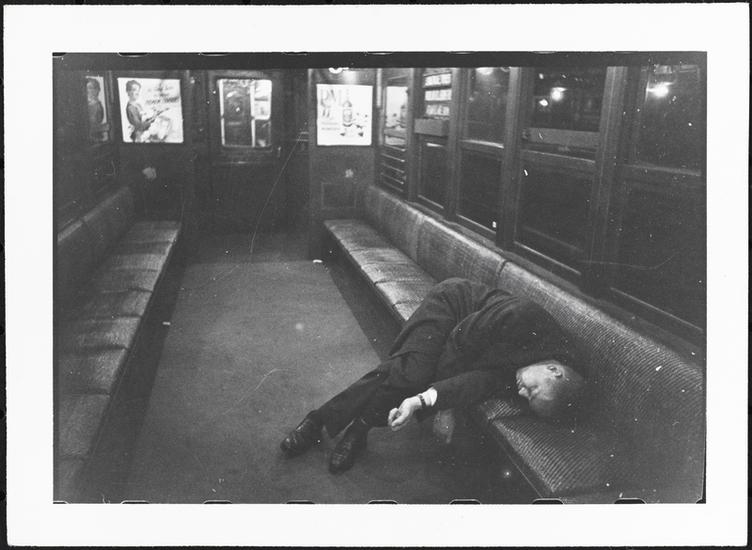 Life and Love on the New York City Subway [Man sleeping in a subway.]