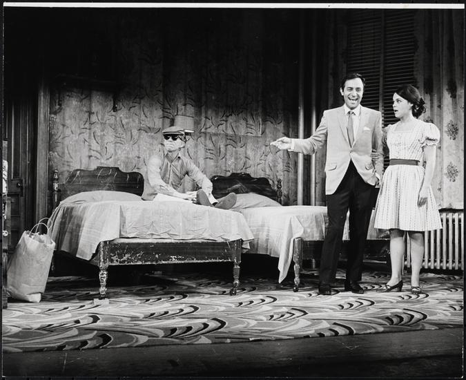 [Alexandra Berlin as Agatha Sue, Corbett Monica as Jack, and Ray Walston as Eddie in a rehearsal for "Agatha Sue, I Love You".]
