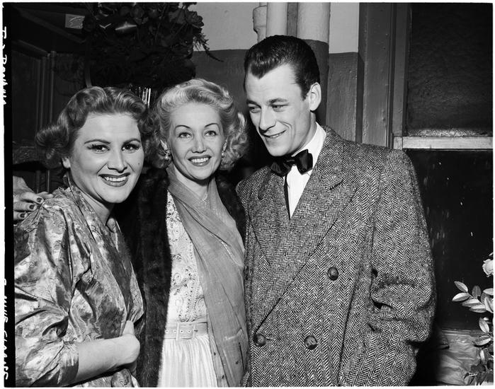 [Paula Stone, Phil Silvers and Mike Sloane at a party for "Top Banana".]