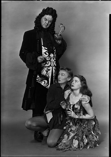 [Lawrence Tibbett as Captain Hook and Veronica Lake as Peter Pan.]