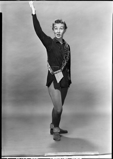 [Peggy O'Hara as Wendy and Veronica Lake as Peter Pan.]