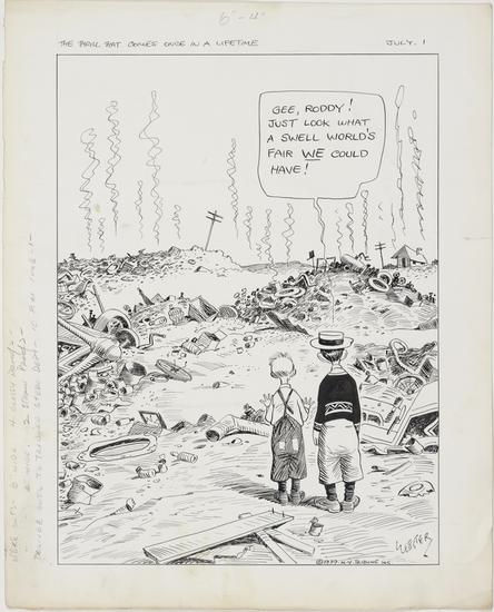 Mr. Milquetoast is asked by a Californian and a New Yorker if he is going to the World's Fair.
