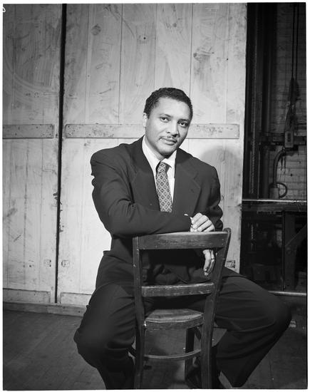[William Marshall on the set of "The Green Pastures".]